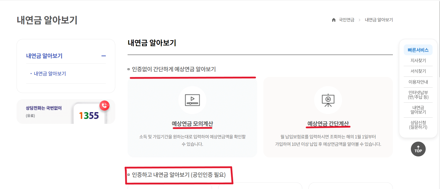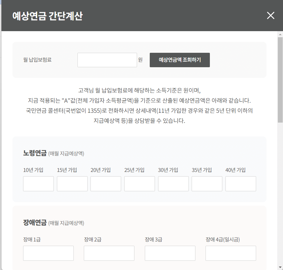국민연금 홈페이지에 접속하여 인증 없이 간단하게 예상 수령액을 조회해 보실 수 있습니다.