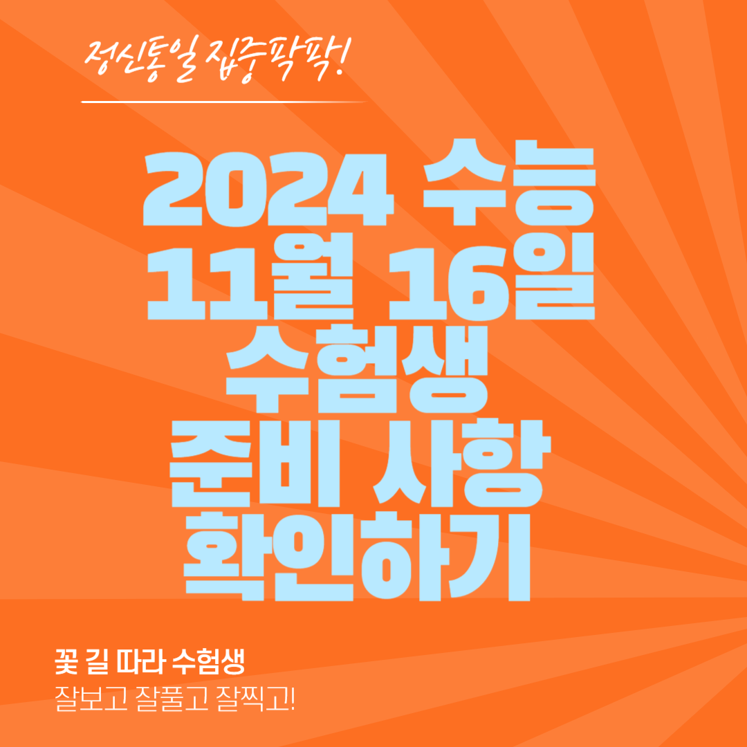 2024 수능이 한달 여 남았습니다. 수능 30일전부터 준비해야하 사항 건강관리 꿀팁 준비물 챙길 때 꼭 가져가야 하는 사진 한 장까지 모두 확인해 보세요.